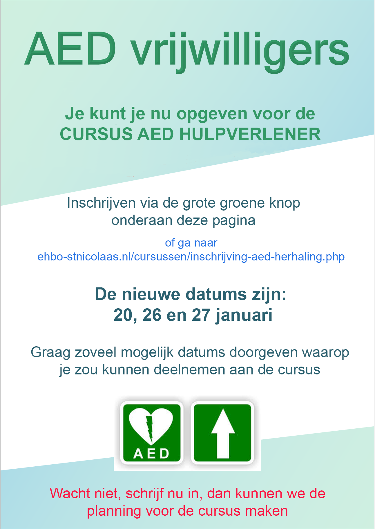 Er staan een aantal datums in optie; jullie kunnen je inschrijven via de website.